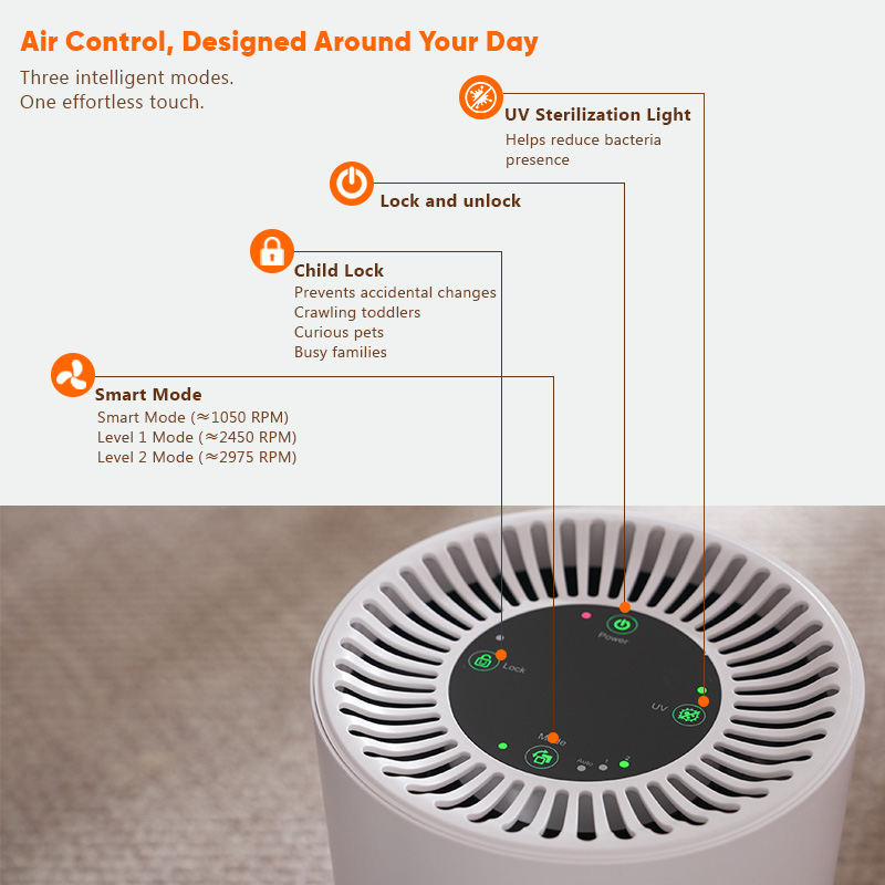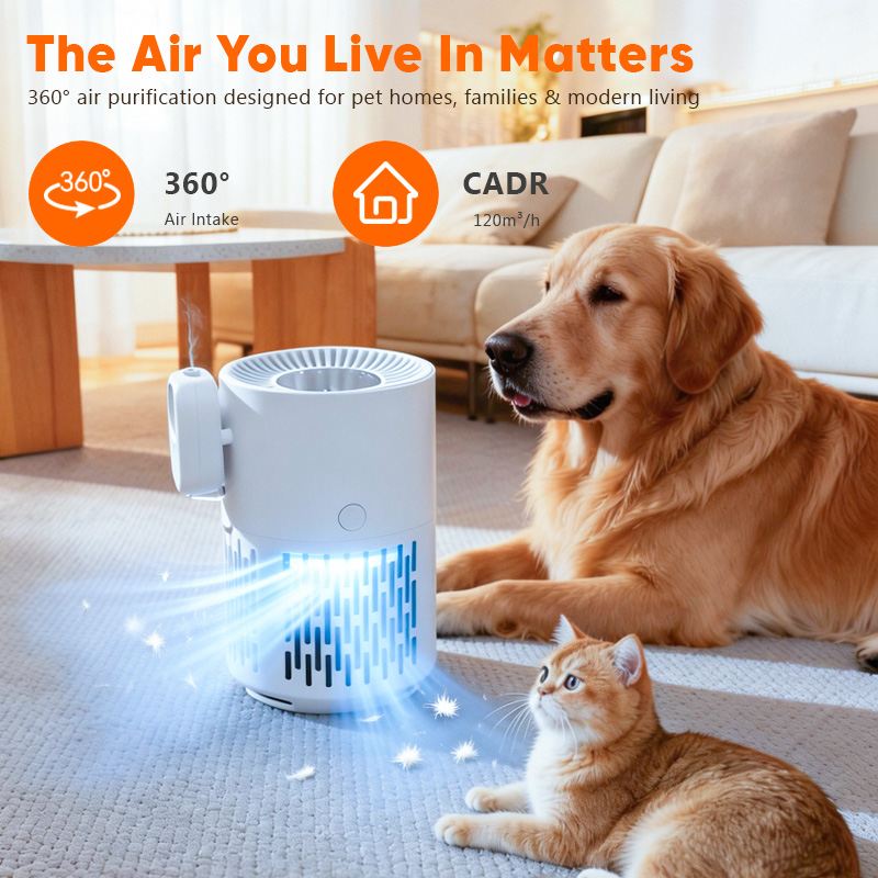 Keep your space fresher and more comfortable with our pet air purifiers, designed for everyday homes with cats and dogs. These units help capture common airborne particles like pet hair, dander, and household dust while continuously circulating and purifying the air. Built with simple, user-friendly controls, you can easily switch between Auto mode, Level 1, and Level 2 to match your room and routine. Selected models also include UV sterilization and a built-in aroma deodorizer to support a cleaner-smelling environment—ideal for living rooms, bedrooms, pet areas, and small offices.
