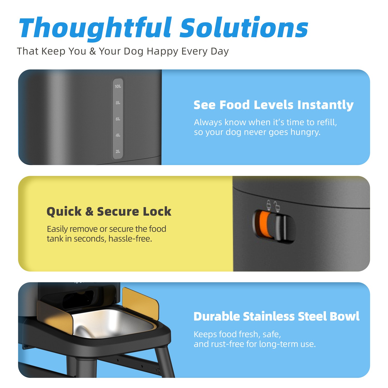 Easily customize feeding times and portion sizes through programmable settings. Whether you feed once or multiple times a day, your dog’s meal plan stays consistent and controlled.