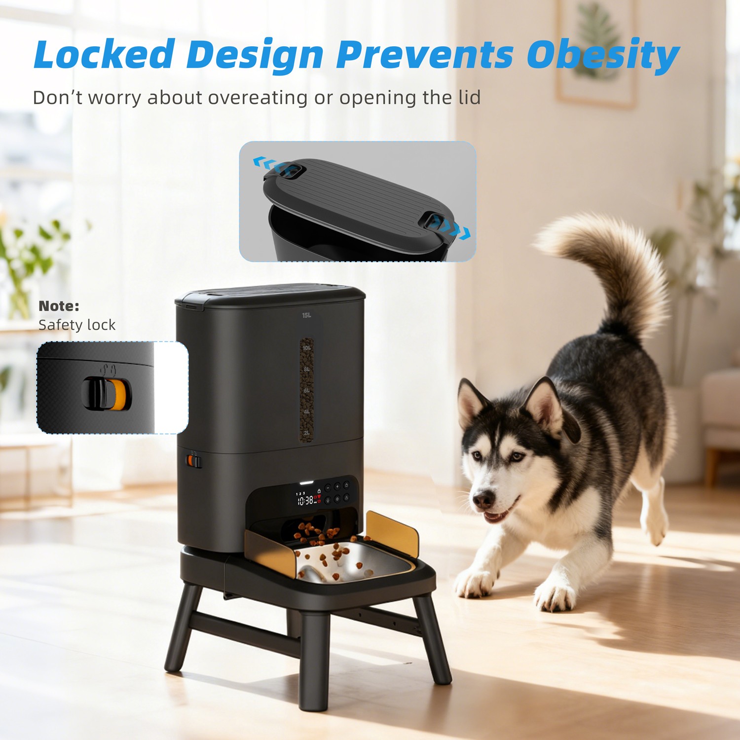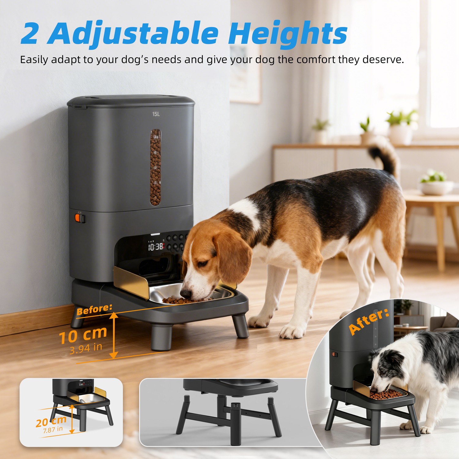 Feed your pets smarter with the Tikpaws® 15L Automatic Pet Feeder. Featuring an adjustable elevated bowl stand, this large-capacity feeder promotes healthier posture, precise meal scheduling, and reliable nutrition for both dogs and cats.