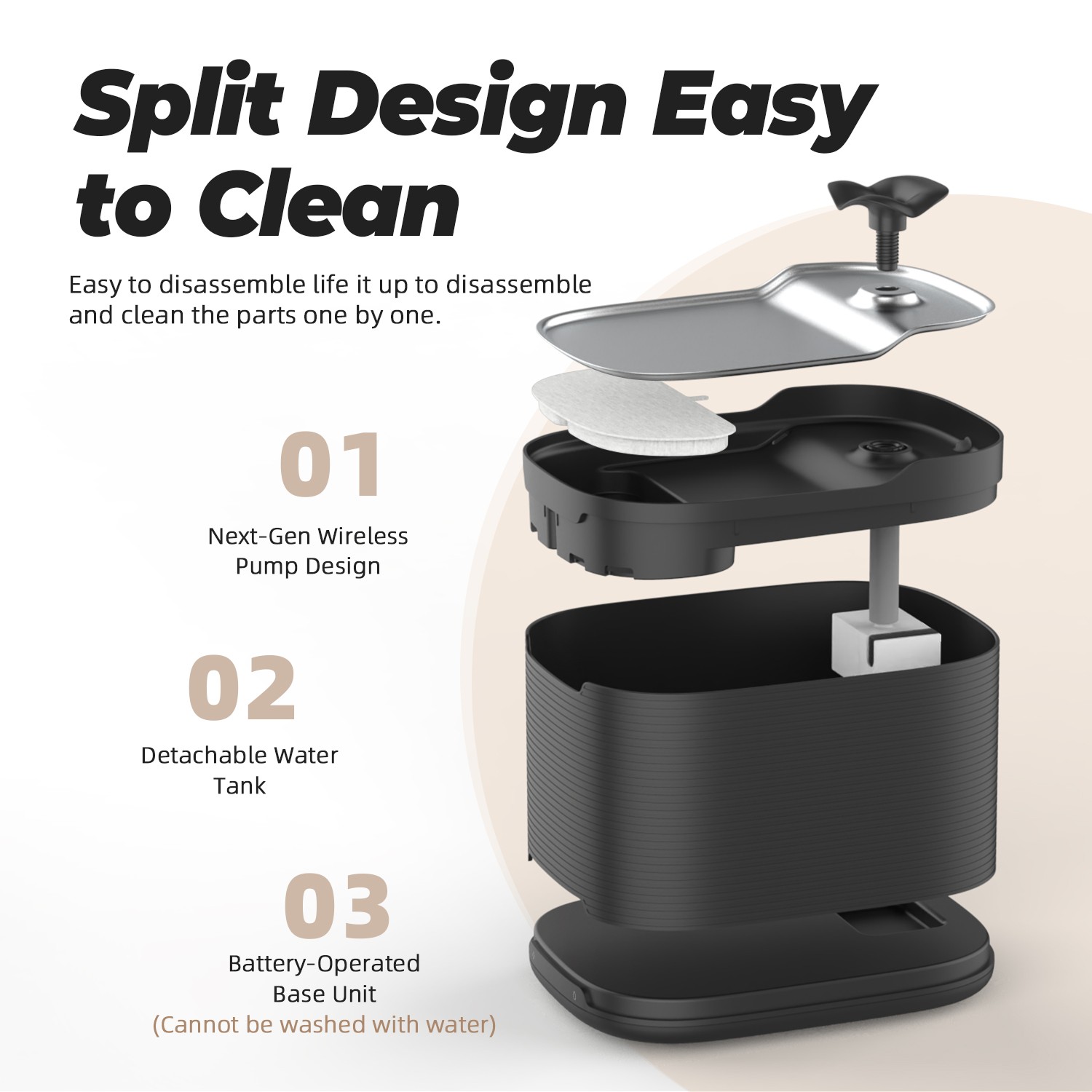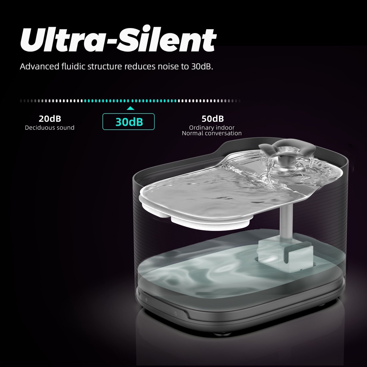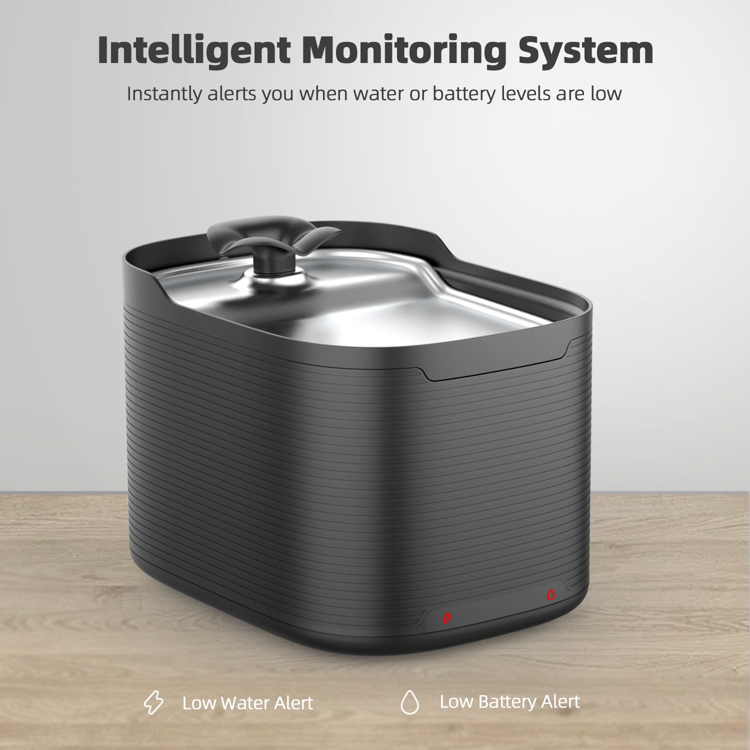 Wireless. Worry-Free. 2.5L Stainless Steel Hydration for Healthier Pets.