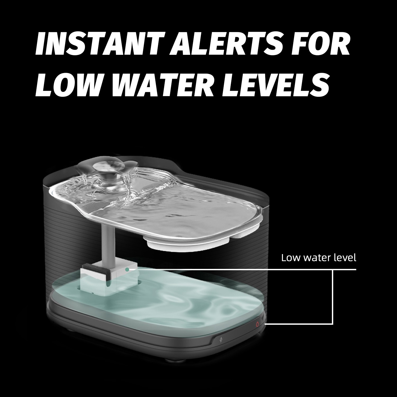 Low water and low battery warnings at a glance, ensuring pet owners never miss a refill or recharge.